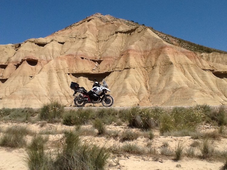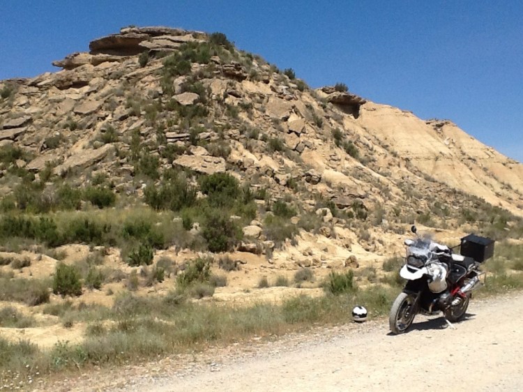 And so to the bike. I had a destination in mind. This was going to be a kind of rest day, no big miles, so I had decided to visit Bardanes Real. This an ecological park within about 30 miles of Sos Del Ray Catolico and I’d heard it was spectacular. It is also a military training ground, firing range and practise area for the Spanish Air Force, so access to certain areas is limited. Interesting though that you designate an area of outstanding natural beauty and scientific interest – then bomb the crap out of it.